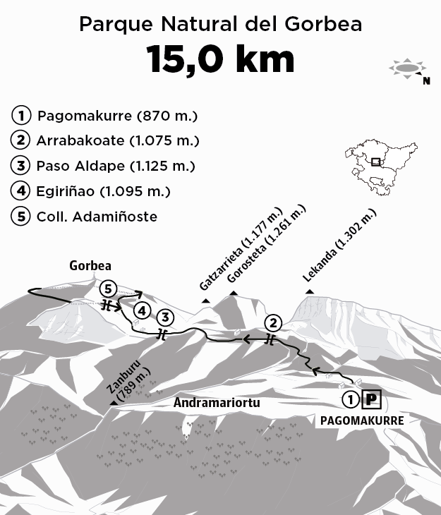 Gorbeia (1.482 m.), Arroriano (1.341 m.) y Pagazuri (1.307 m.) desde Apodaka-Gopegi. 3:50h