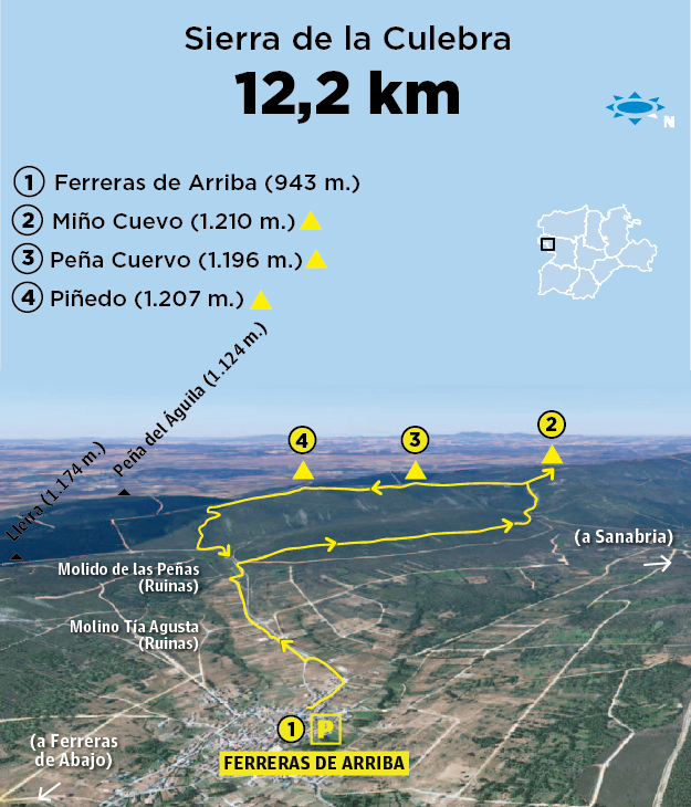 El Miño Cuevo es, tras Peña Mira, la segunda altura de la poco visitada Sierra de la Culebra, cadena montañosa que señala la frontera entre Zamora y Portugal. Cimas que fueron zona de pastoreo hasta mediados del siglo XX.