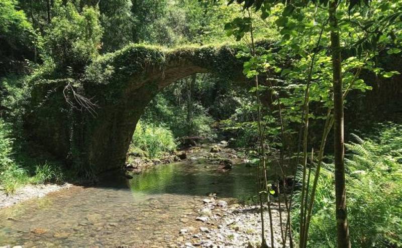 De vuelta al camino principal, seguimos el trazado del Camino de Santiago costero hasta Zarra, donde iniciamos el retorno a Santo Tomás de Arratzu. Primero por la carretera de acceso al barrio y más adelante (dch.) por la calzada de Laprastegi, donde pisaremos los tramos encochados que aun perduran. Tras salir al camino original, retornamos por él a Elexalde, donde afrontamos el segundo bucle, que recorre las riberas del río Golako, pasando junto a la vieja ferrería de Olazarra y su presa. Al parecer, la ferrería ya existía en el s. XVII, y además del mineral local importaba hierro desde Somorrostro. El río Golako fue motor de un gran número de molinos y ferrerías.