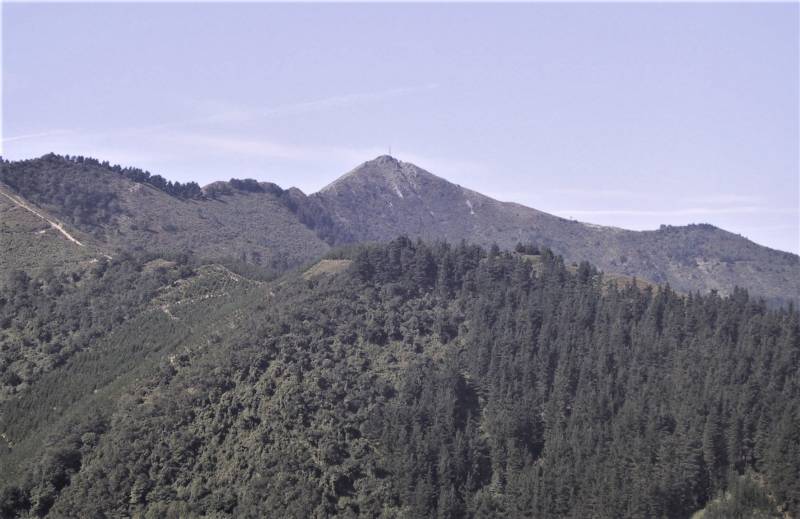 Volvemos a la pista y continuamos la ascensión desechando desvíos a izquierda y derecha. Más arriba la pendiente se modera, aunque pronto vuelve la pendiente. Es el momento de tomar el primer desvío (dch), que nos sitúa de nuevo en el cordal, por el que de nuevo subimos con fuerza. Tras cruzar un pinar salimos a una zona abierta y herbosa cerca de la cota menor del Asuntza. Ya con el Untzueta a la vista, afrontamos la subida final junto a la cresta y el precipicio que da a Zeberio. Dos curvas invitan a seguir la pista de servicio de la antena, pero seguimos rectos hasta la cima (1h.30’), ocupada por el repetidor.